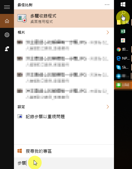 - Windows 提供的 step recorder:在 Windows 中搜尋「步驟」或”recorder”,就可以叫出步驟收錄程式(如上圖)。可參考:如何使用問題步驟收錄程式?
